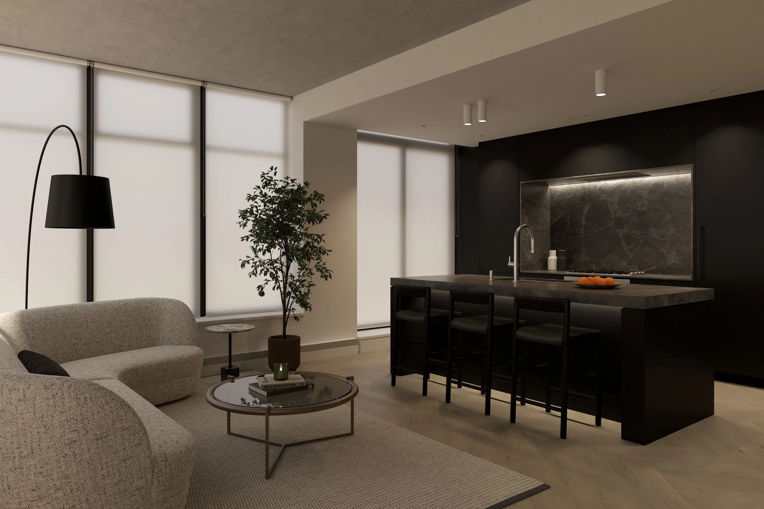 Our clients approached us to reimagine their existing sub-penthouse suite in the iconic Woodward’s building in the heart of Vancouver. The brief called for a sophisticated, elevated interior that draws inspiration from the industrial character of the surrounding neighbourhood.