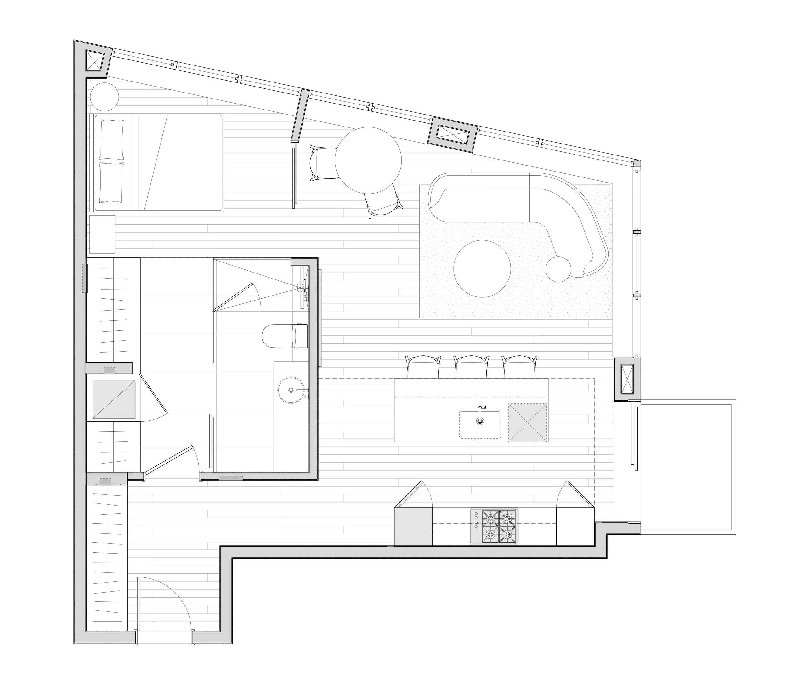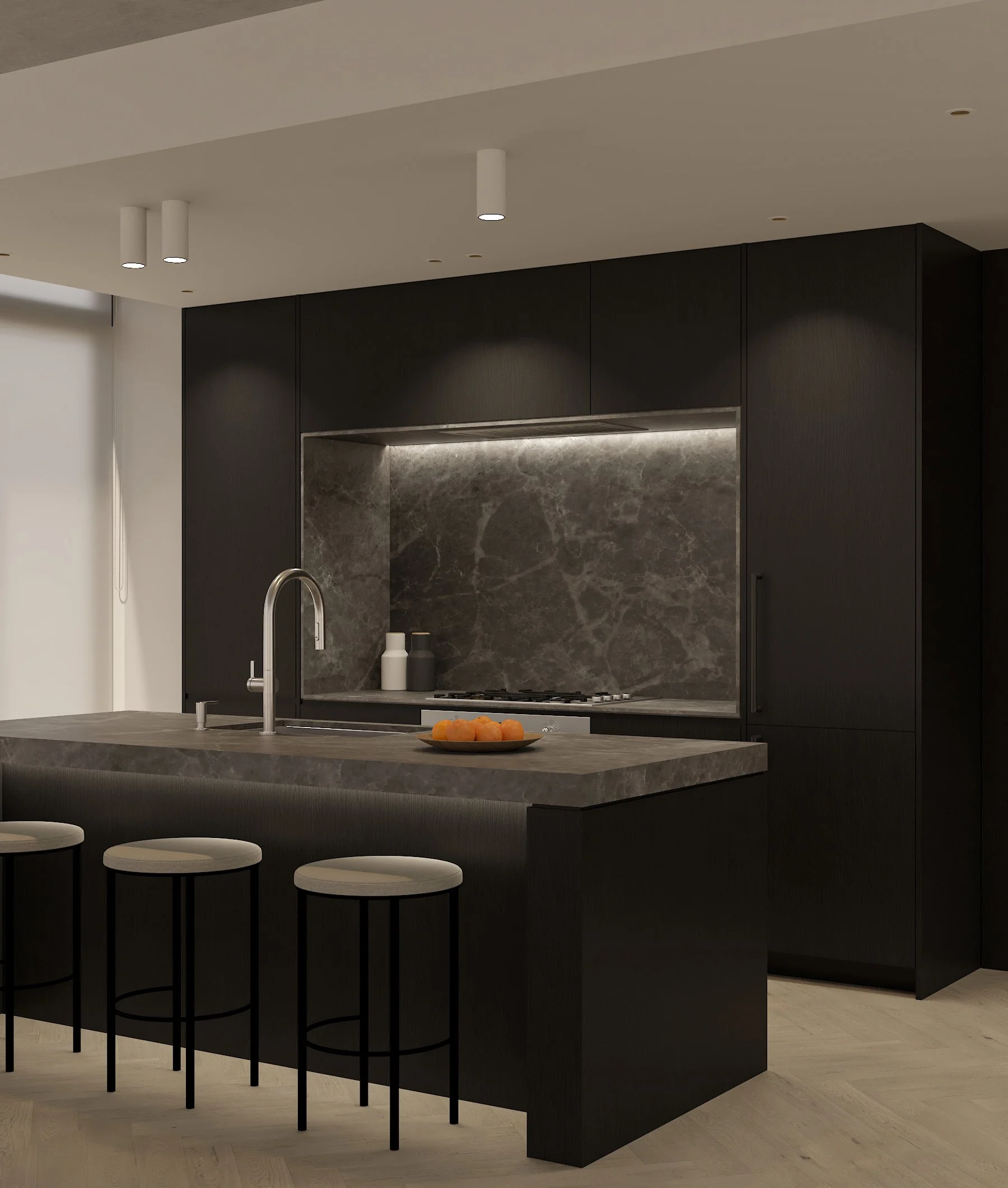 Our clients came to us wanting to reimagine their existing sub-penthouse suite in the iconic Woodwards building in the heart of Vancouver. The brief was to create a sophisticated and elevated space inspired by the industrial elements of its neighbourhood.